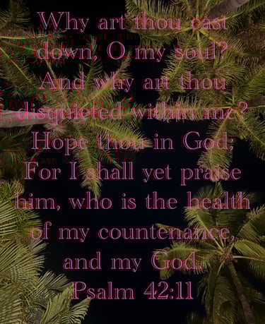 The result? Look at the end of the verse, “…who is the health of my countenance, and my God.” He will heal your countenance. Your emotional state. Your disquieted spirit. Your anxiety. He will take that and remind you Who He is!